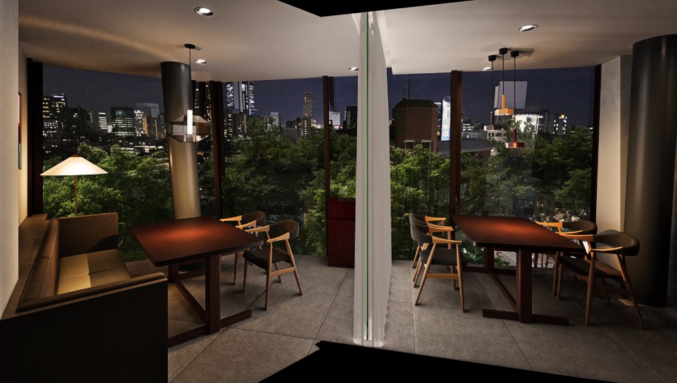 2面の窓から自然光が降り注ぐ、広がりと明るさを感じさせるメインダイニングにおいては、世界を舞台に活躍するアーティストによるアートが配置されています。ダイニング奥のエリアは、原宿クエストのデザインアーキテクトを務めた建築設計事務所「OMA」の代表・重松象平氏による傾斜したサッシとブレースや、台湾を彷彿とさせるグリーンの大理石の素材感を活かしたデザインです。窓際に配置された個室では、表参道を見下ろしながら特別な食事のひとときを楽しめます。