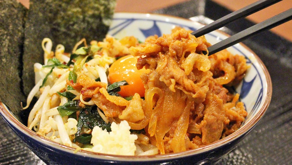 食欲をそそるニンニクとゴマ油の香りに、唐辛子の辛さをプラスしたパンチのある味わいが特徴です。さらに、うどんとの相性を考えカツオの粉末を加えて仕上げました。全体に絡めていただくと、濃厚な卵黄とともに打ち立てのうどん、豊富な具材と調和し、味の一体感が生まれます。