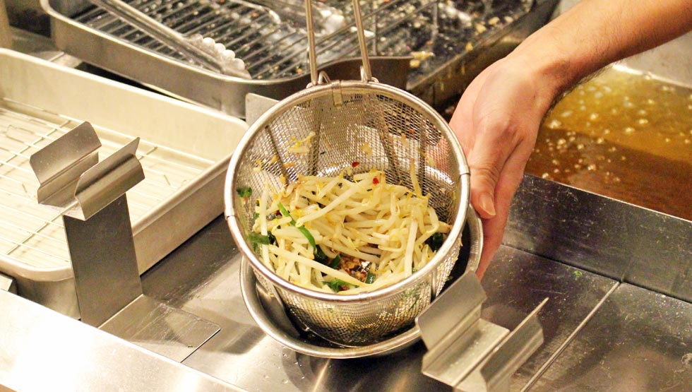 【こだわり 2】注文ごとに素揚げするシャキシャキ!ニラ・モヤシ