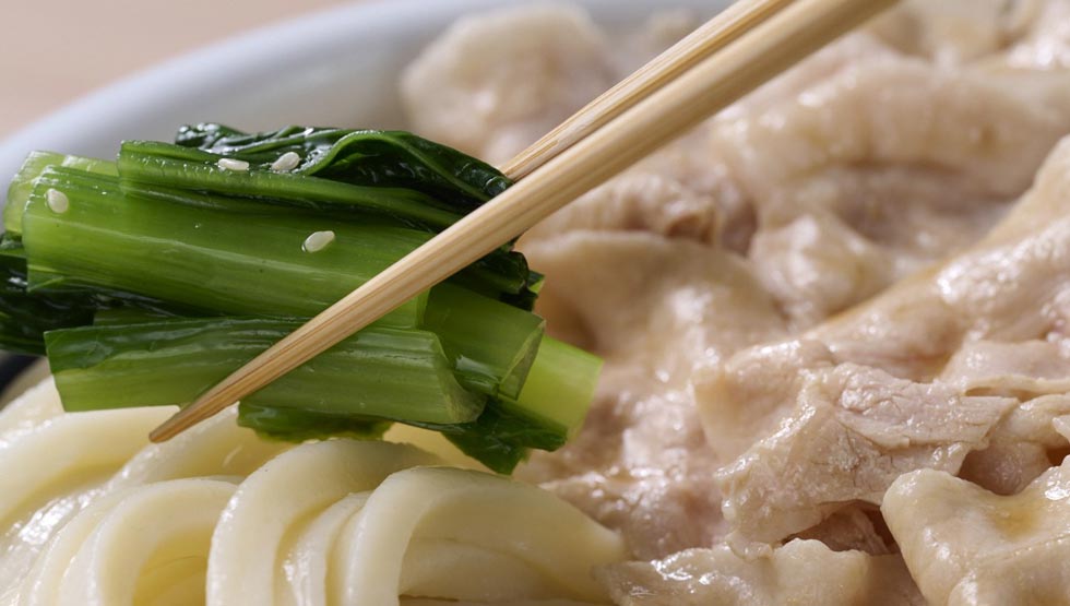 ラー油の辛さが広がる特製のつけ汁に、やわらかな豚しゃぶと、コシのあるうどんを合わせて、思う存分楽しみましょう。