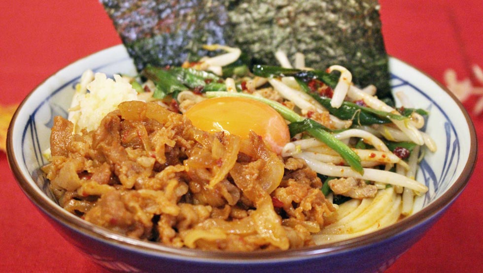 ■「旨辛 肉盛りニラ玉ぶっかけうどん」